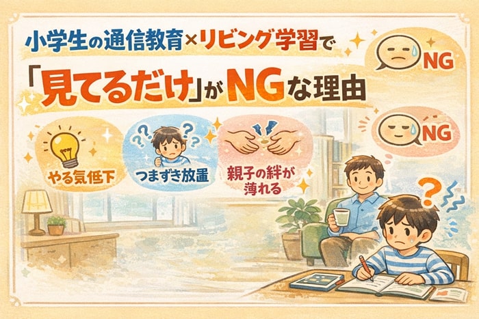 ここでは、小学生の通信教育をリビング学習で行う際に「見てるだけ」がNGとなる理由を整理します。