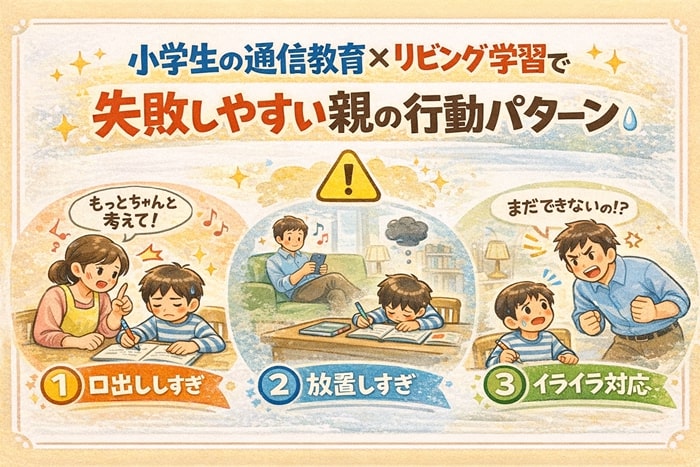 小学生の通信教育×リビング学習で失敗しやすい親の行動パターン