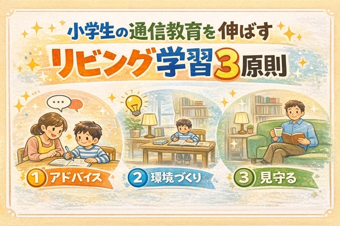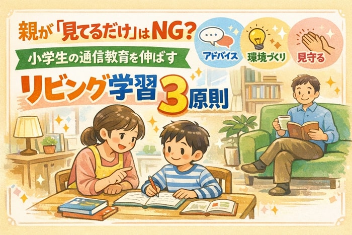 本記事では、小学生の通信教育をリビング学習で伸ばすために、まだ多くのサイトで言語化されていない「親の関わり方の3原則」を実践レベルで解説します。
