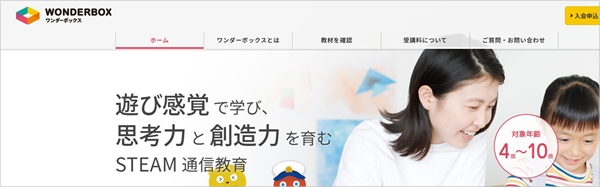 概要:ワンダーボックスはタブレット教材に工作要素を組み合わせた通信教育で、Art(表現)とMath(思考)を自然に結びつけるコンテンツが豊富です。